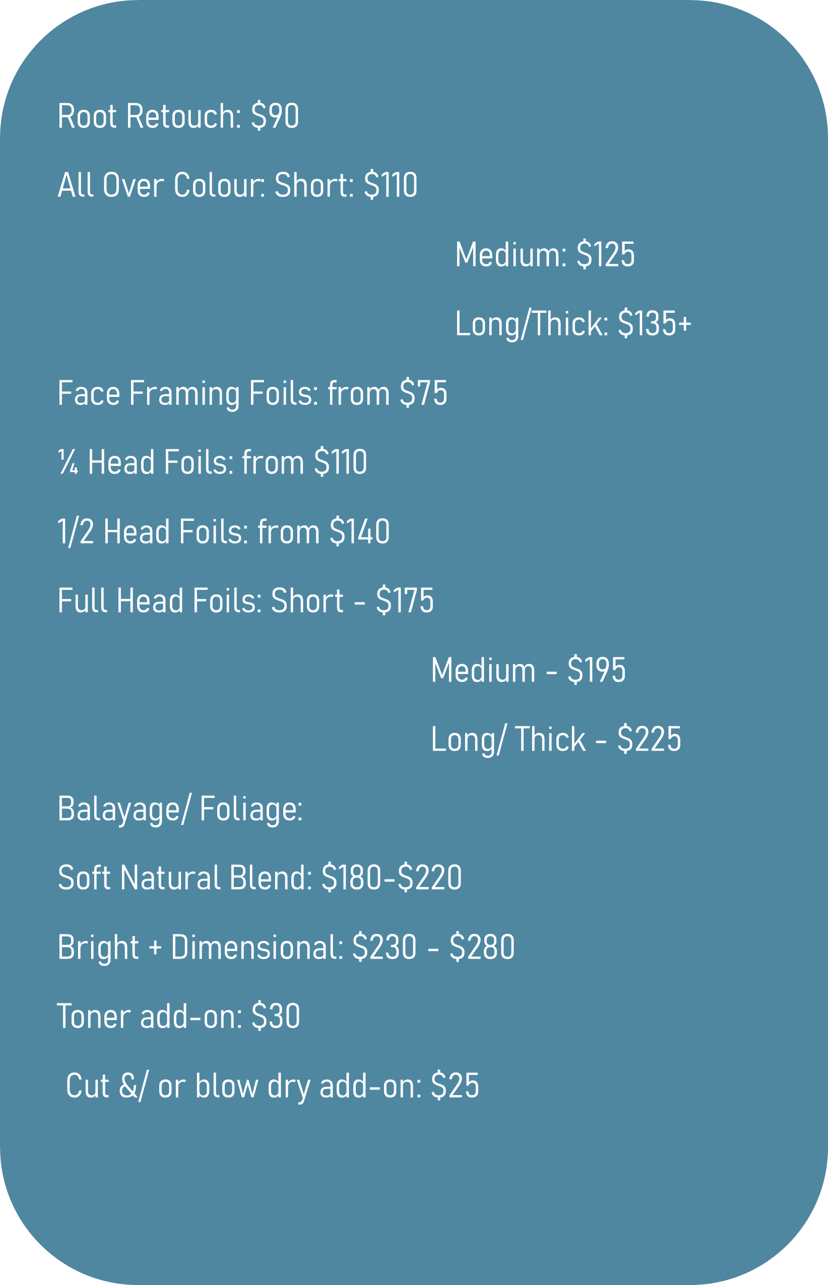 We also offer a complimentary cut & blow-dry alongside the booking of any colour service post-partum.